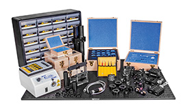 The Lab Starter Kits provide 255 individual parts including a range of lenses, filters, and prisms mainly suited for the visible spectrum. The versatile Lab Starter Kits also contain two light sources, a white LED, and a 640nm Coherent High Performance Stingray Laser Diode module. Additional optomechanics and tools, such as stages, mounts, clamps, wrenches, hex and screw drivers, as well as adapters that are compatible with the included optics, also come in the kit. A 2-Channel Power Supply and VIS Si Receiver module is also included.