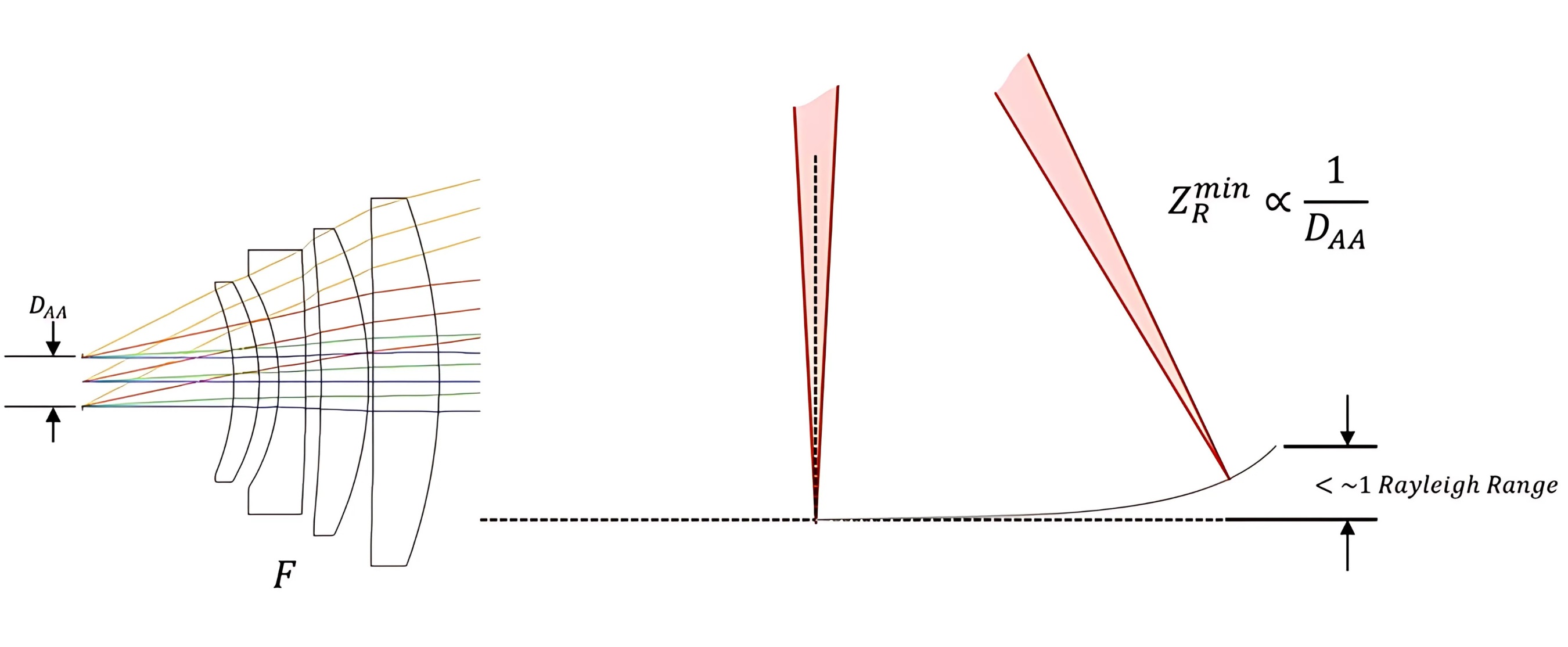 On the other hand, the focal length works in the opposite direction. A longer focal length produces a larger beam waist, which increases the Rayleigh range. This means the beam remains focused over a greater distance, making it more forgiving to surface variations. Therefore, Rayleigh range is directly proportional to focal length and inversely affected by beam diameter.