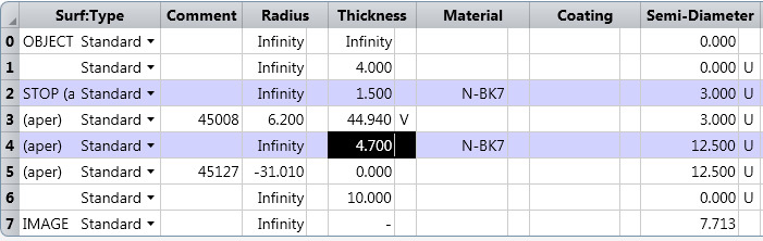 Figure 1: Lens data editor