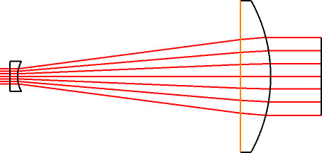Where $ \small{f_1} $ is the focal length of the positive lens and $ \small{f_2} $ is the focal length of the negative lens. Designing using stock optics is as simple as selecting a positive and negative lens that meets your magnification requirements (Equation 1) without exceeding your system length requirements (Equation 2). As illustrated further these equations are first-order equations, and lens thickness and focus optimization will cause slight deviations from these ideal values.