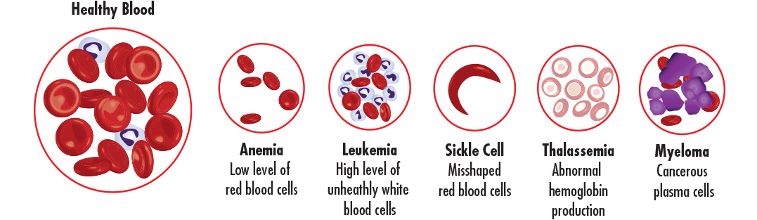 Below are common ailments of the blood that are detected by advanced diagnostic techniques such as flow cytometry. Optical advancements allow these ailments to be more easily detected and treated, providing a means for making medical technology and equipment more quick, portable, and simple to use.